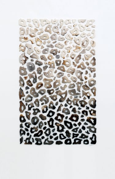 Trace of Life explores the delicate tension between impermanence and continuity. Inspired by natural patterns of decay—such as the holes left by insects on leaves—I create forms that reflect the fragility and resilience of life. Each shape holds a story: a fragment of memory, a quiet erosion, a mark of time passing. These assembled moments form a layered narrative that embraces the unfinished and the imperfect. The series honors change as a constant—showing how even what fades leaves behind a trace, and how life continues through transformation.